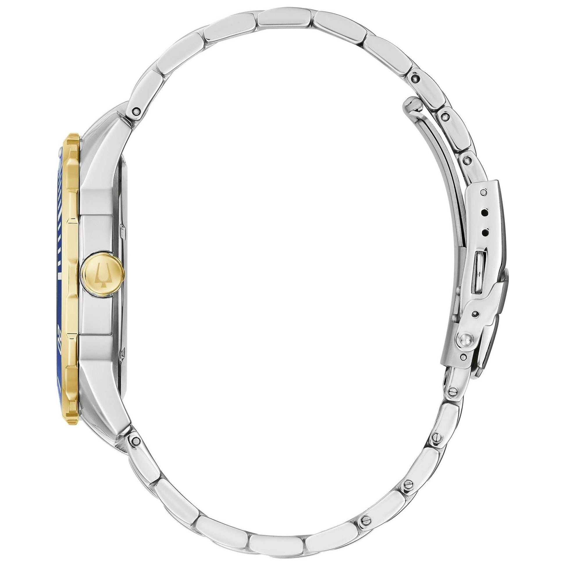 This new classic style watch features a two-tone stainless steel case and ratchet bezel. It is a modern take on a timeless watch that will be a perfect addition to any collection.