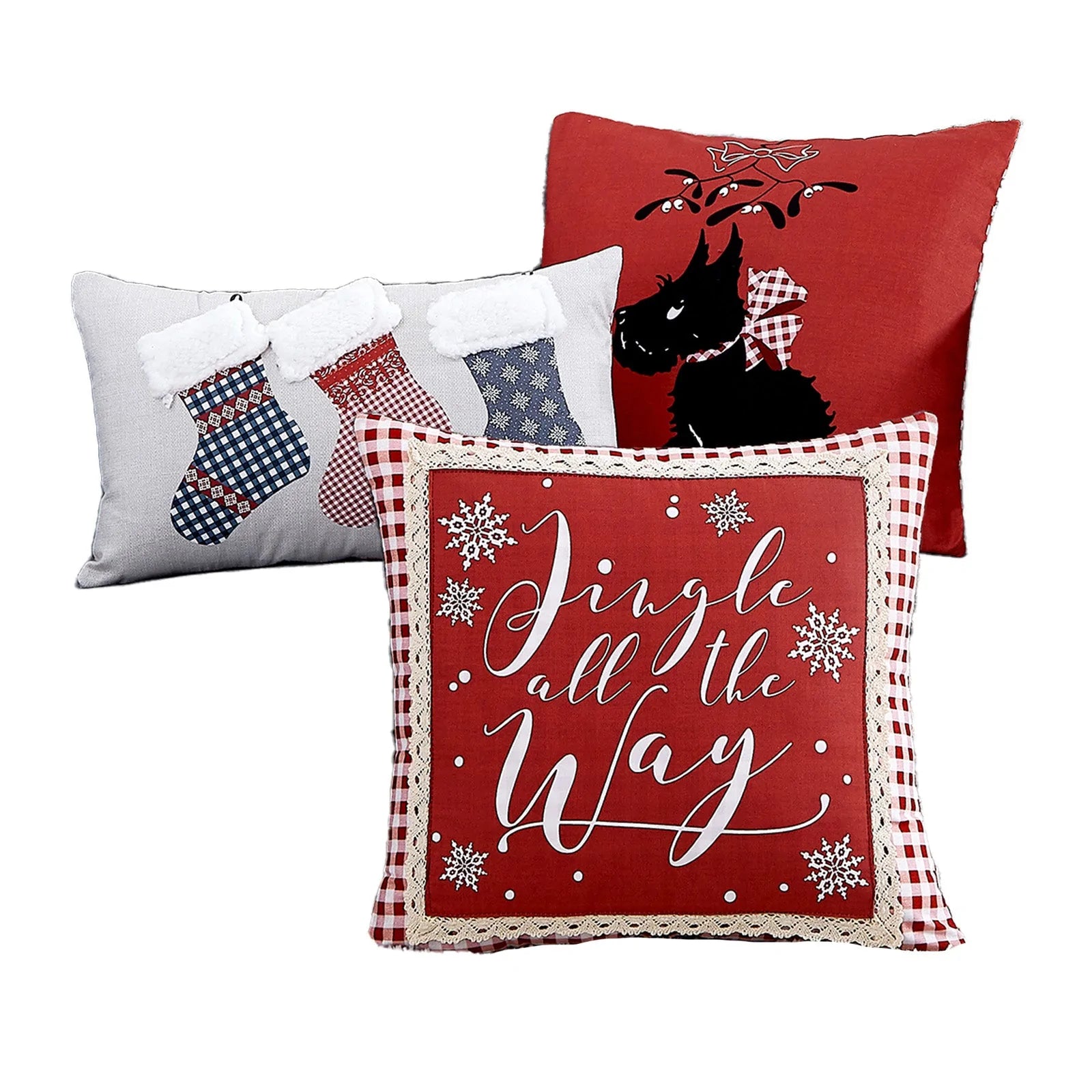 Get in the holiday mood with this adorable 3 piece throw pillow set. Perfect for the bed or couch!